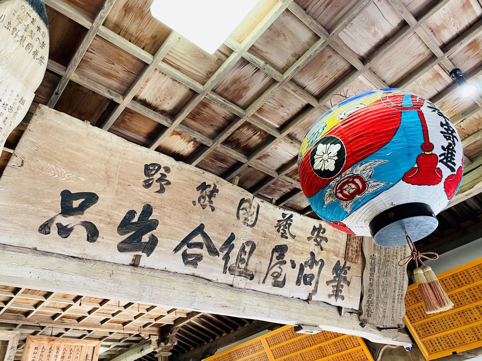 社殿の中を見上げると…筆の町、熊野だけあります。