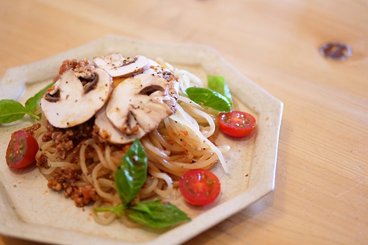 みんなが大好きなミートソースとこの麺をあわせたらきっとおいしいだろうってところから商品開発にとりかかりました。