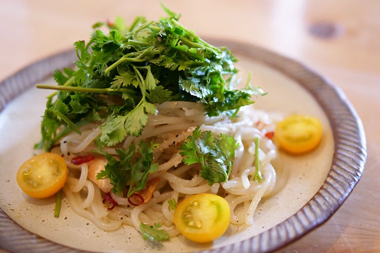 こだわりはマイルドなパクチーを生かすためにニンニクとオリーブオイルの風味をきかせたところです。お互いの味を引き立てるように工夫しました。