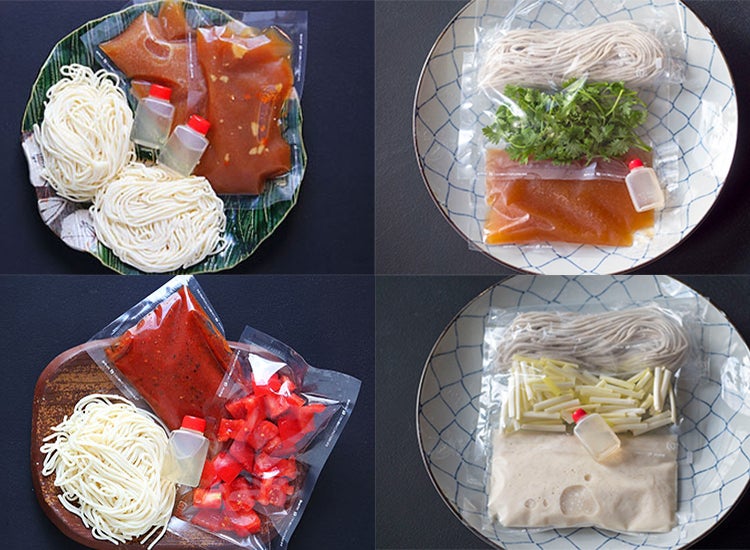 ※内容は定番ピリ辛冷麺+パクチー冷麺+トマト冷麺+プレミアお任せ麺(うに、アワビ、ロブスターなどを使用した月替わりの麺)となります