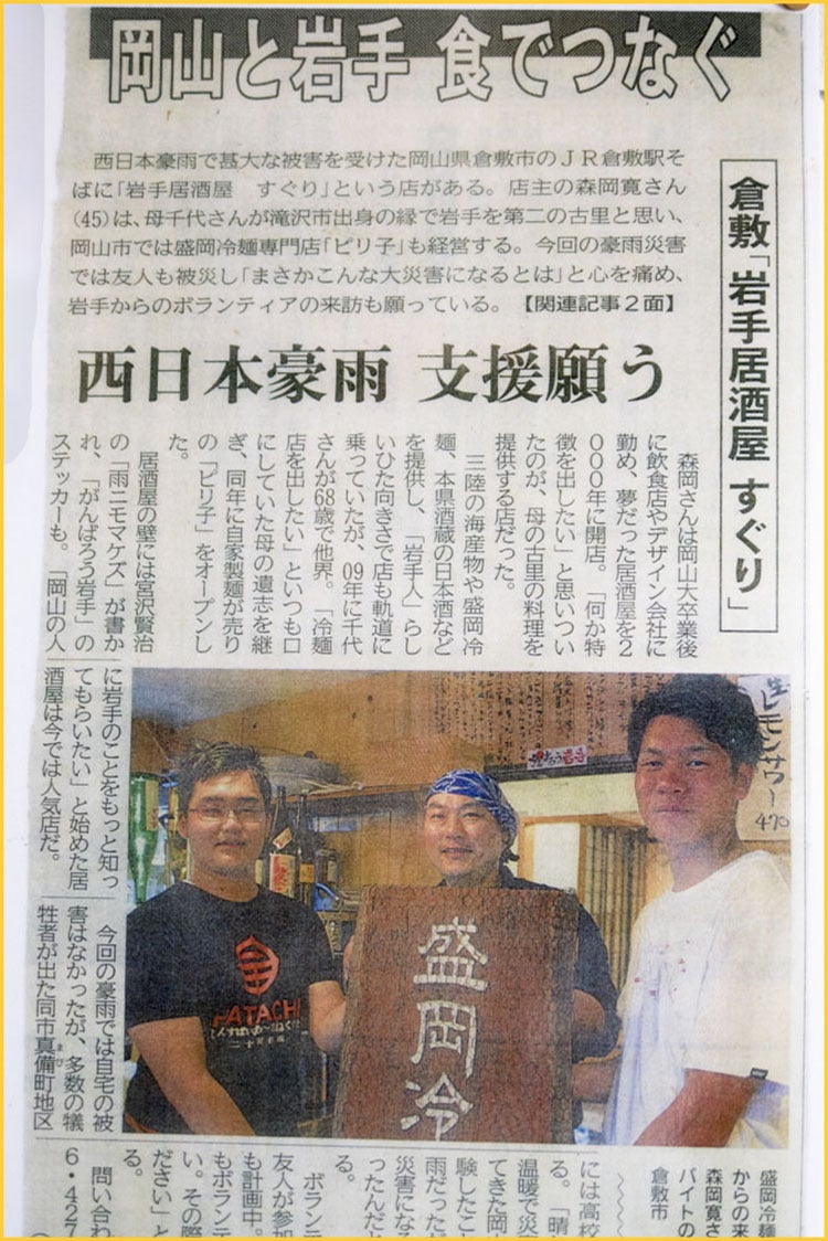 我々、森岡姉弟(姉:美千代、弟:寛)は倉敷にある居酒屋すぐりを現在経営しており、ほんの1年前まで岡山市にて10年間、盛岡冷麺ピリ子の経営も行なっていました。