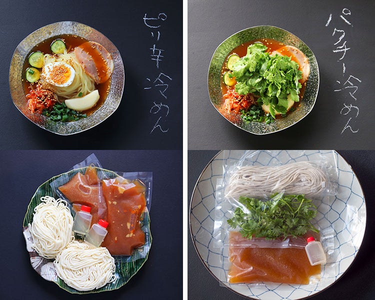 定番ピリ辛冷麺x2+パクチー冷麺x2