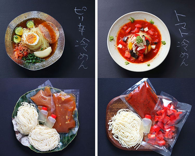定番ピリ辛冷麺x2+トマト冷麺x2