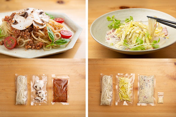 ➈ 6,000円:ドヤれるミートソース温麺×岡パクペペロンチーノ温麺セット(2種×2個入り)