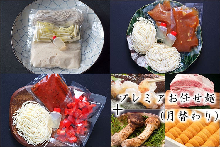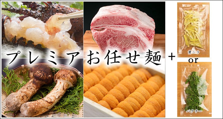 松茸、うに、アワビ、ロブスターなどの高級食材のいずれかを使用した高級なお任せ麺