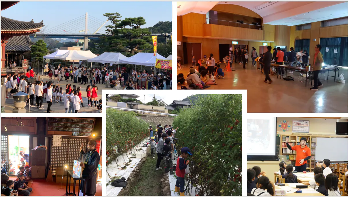 子供たちに向けた尾道青年会議所の取り組みとして、【尾道寺子屋】で実際にお子様に尾道のお寺に宿泊して頂くような体験事業や、【ありがとうの授業】では尾道市内の各学校を回らせて頂き、感謝の気持ちを学ぶ授業を展開させて頂きました。
