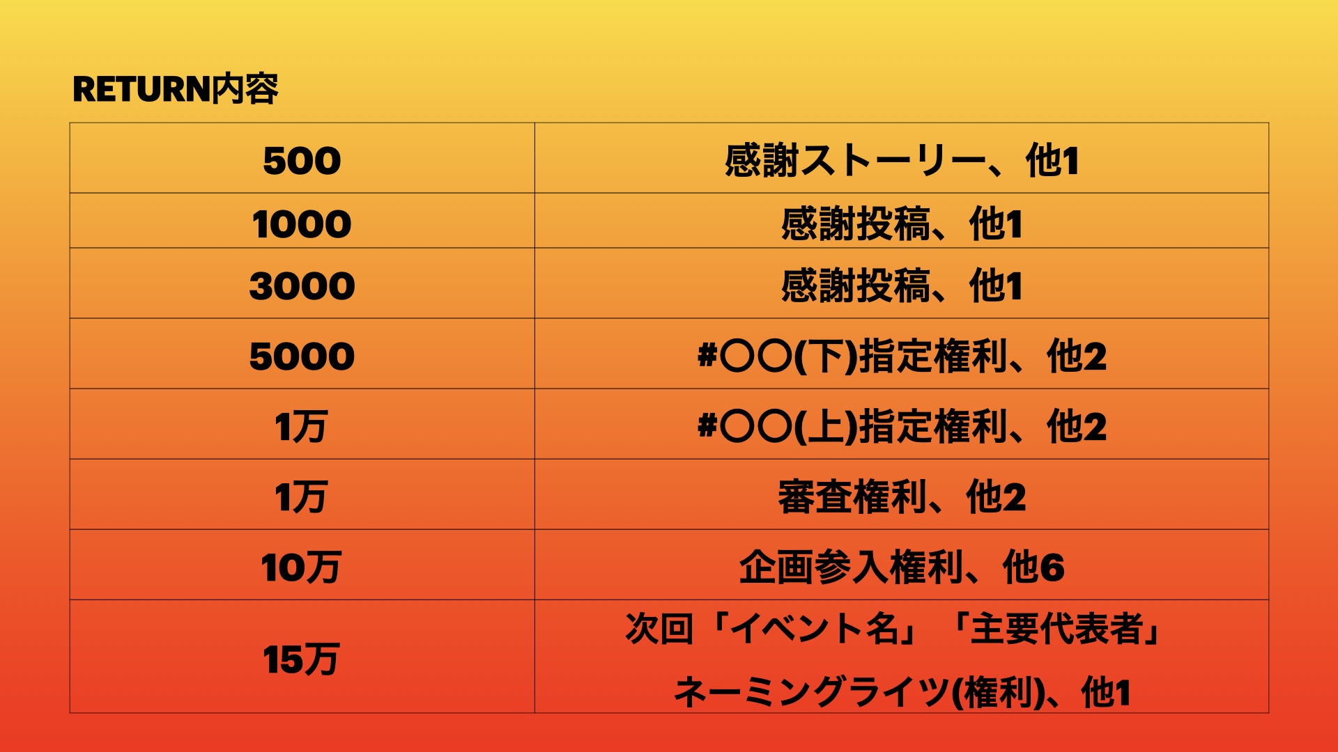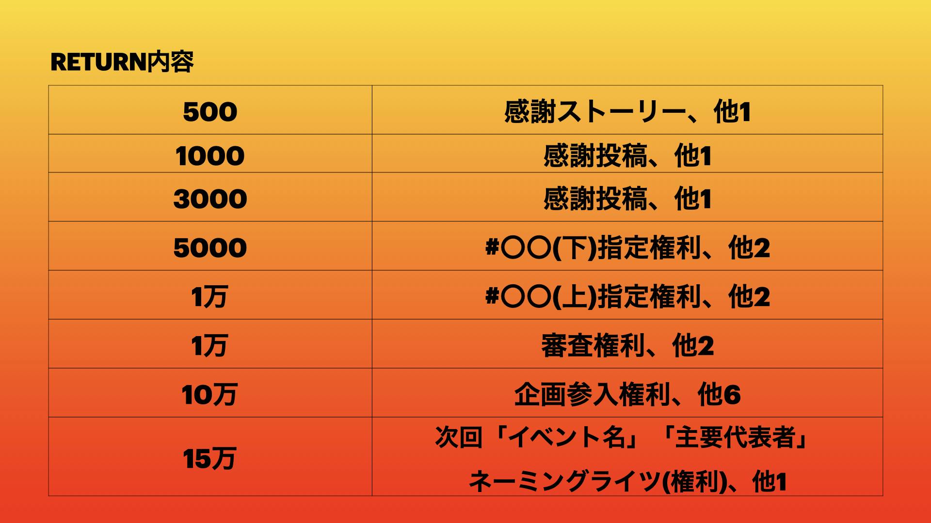 ※リターン全般に関しまして公序良俗に反する内容、法令に違反する内容などはお受けできません。
