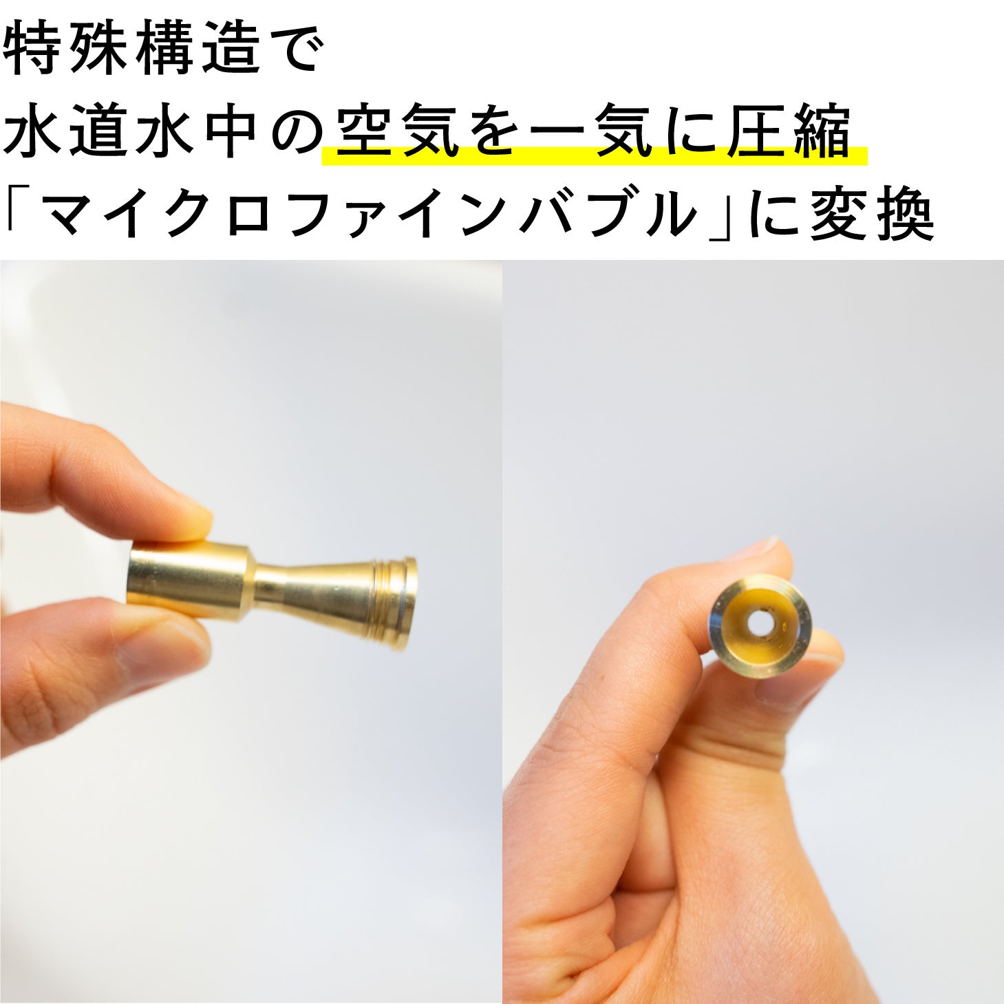 マイクロファインバブルアダプター「爽泡(SAWAWA)」は、アダプター内にある特殊パーツによって、水道水中の空気を圧縮しマイクロファインバブルを発生させます。