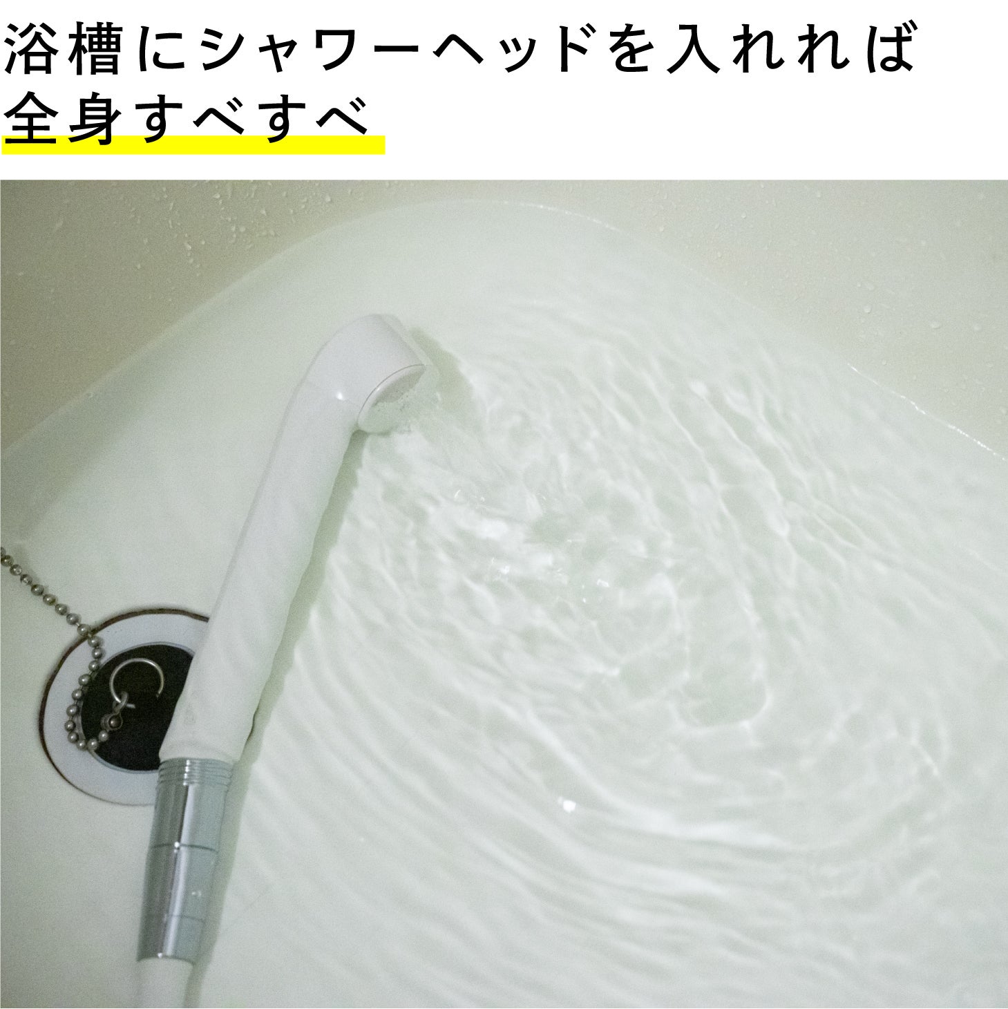 シャワーホースに SAWAWAを取り付けた状態でお湯を出し、そのまま浴槽に入れると、浴槽内に溜まっているお湯にもマイクロファインバブルが充満し、全身で浴びることができます。