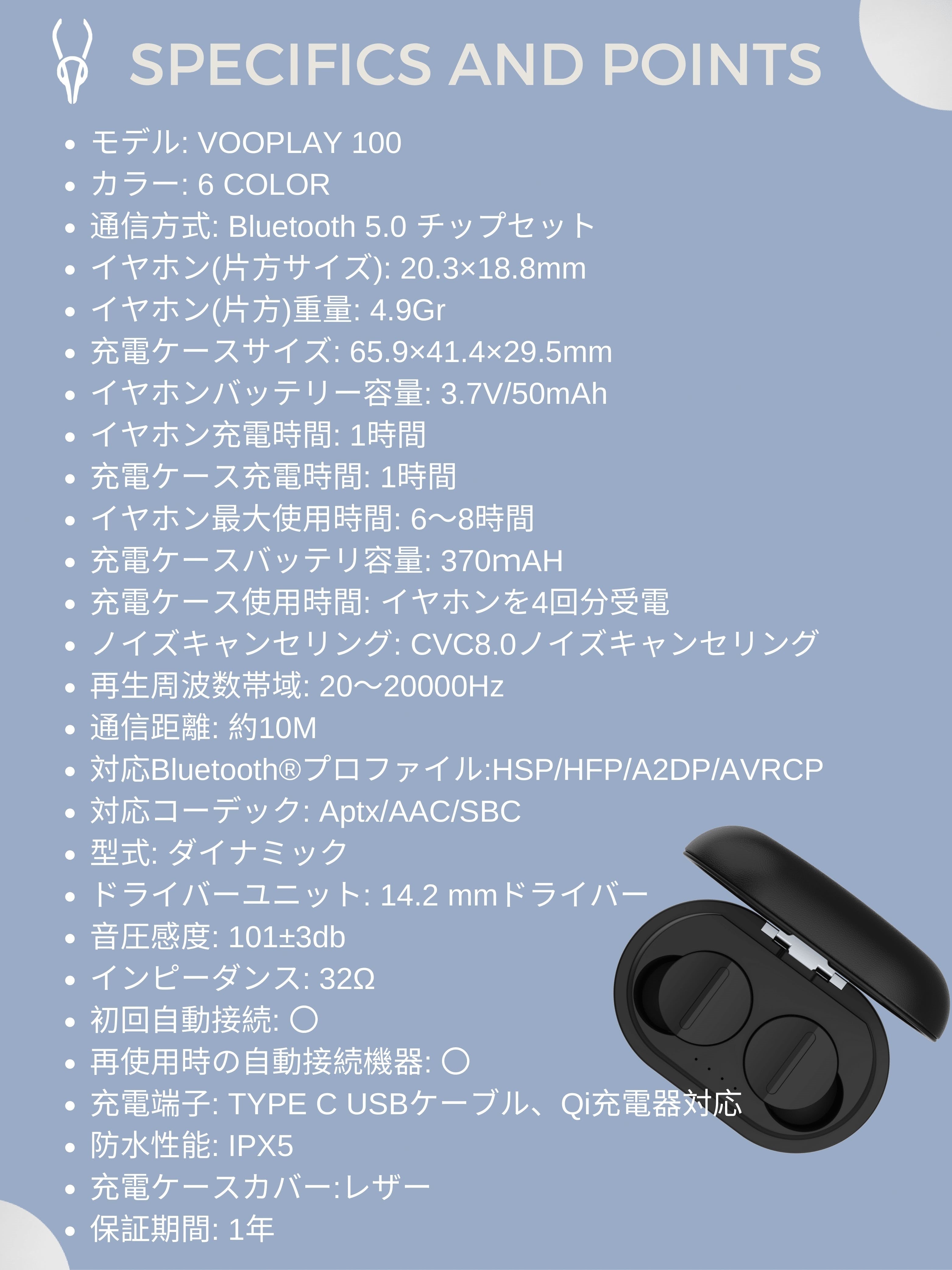 株式会社OLYMPUS MONSでございます。この度は、2020年北欧デザイン完全ワイヤレスイヤホンVOOPLAY 100をご紹介いたします。リターンページをご覧頂きましてありがとうございます。