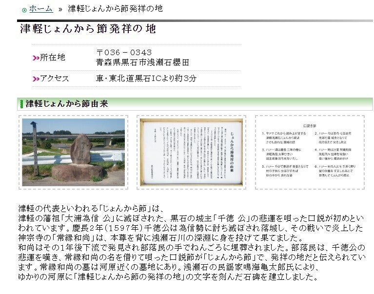 三味線で奏でられる独特の民謡の『津軽じょんがら節』 は青森県黒石市が発祥の地は