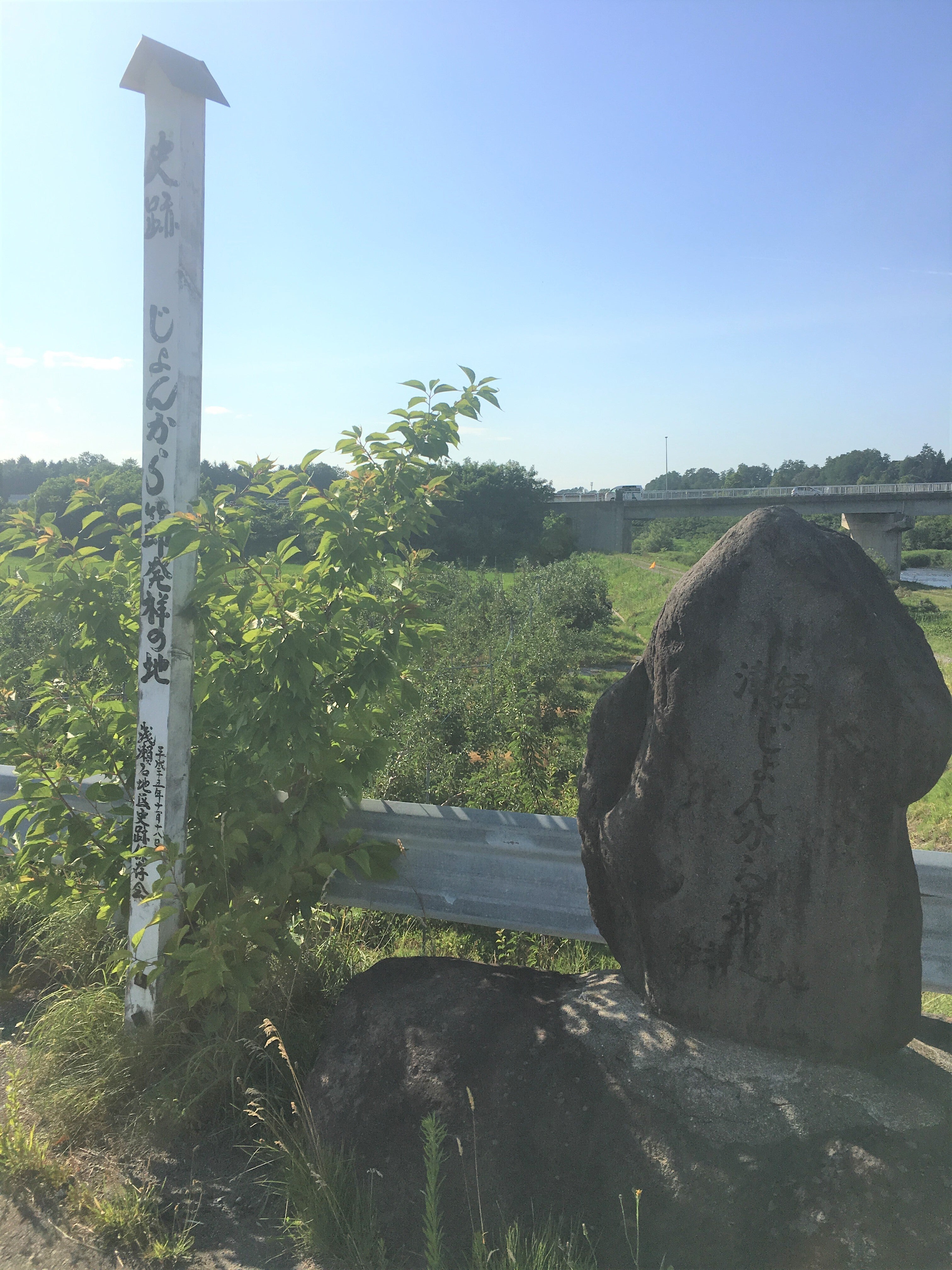 ゆかりの河原に「津軽じょんから節の発祥の地」の文字を刻んだ石碑を建立しました。