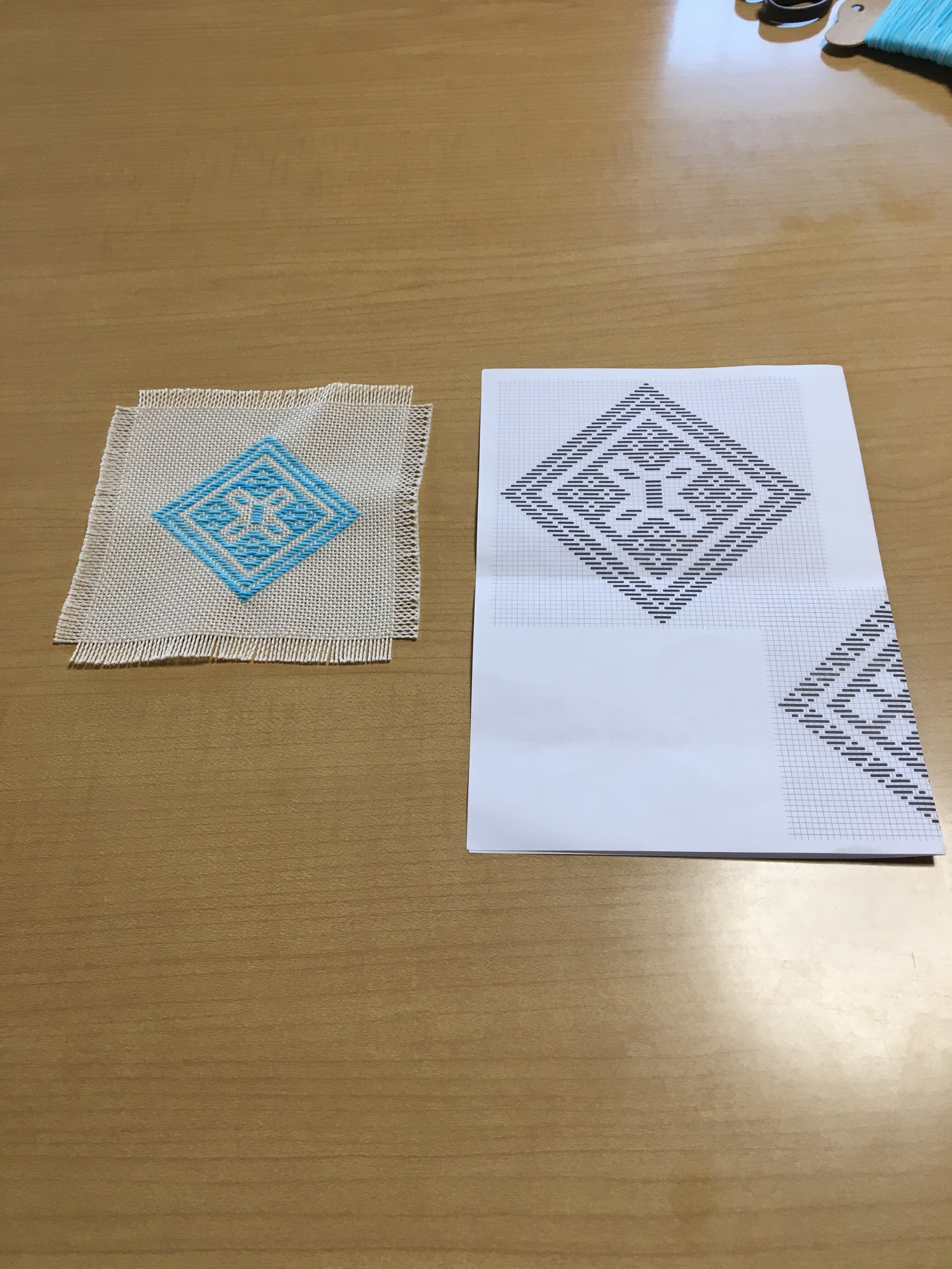 縦の織り目に対して一・三・五・七、、、と奇数目を数えて刺す技法で弘前を中心に発展した。