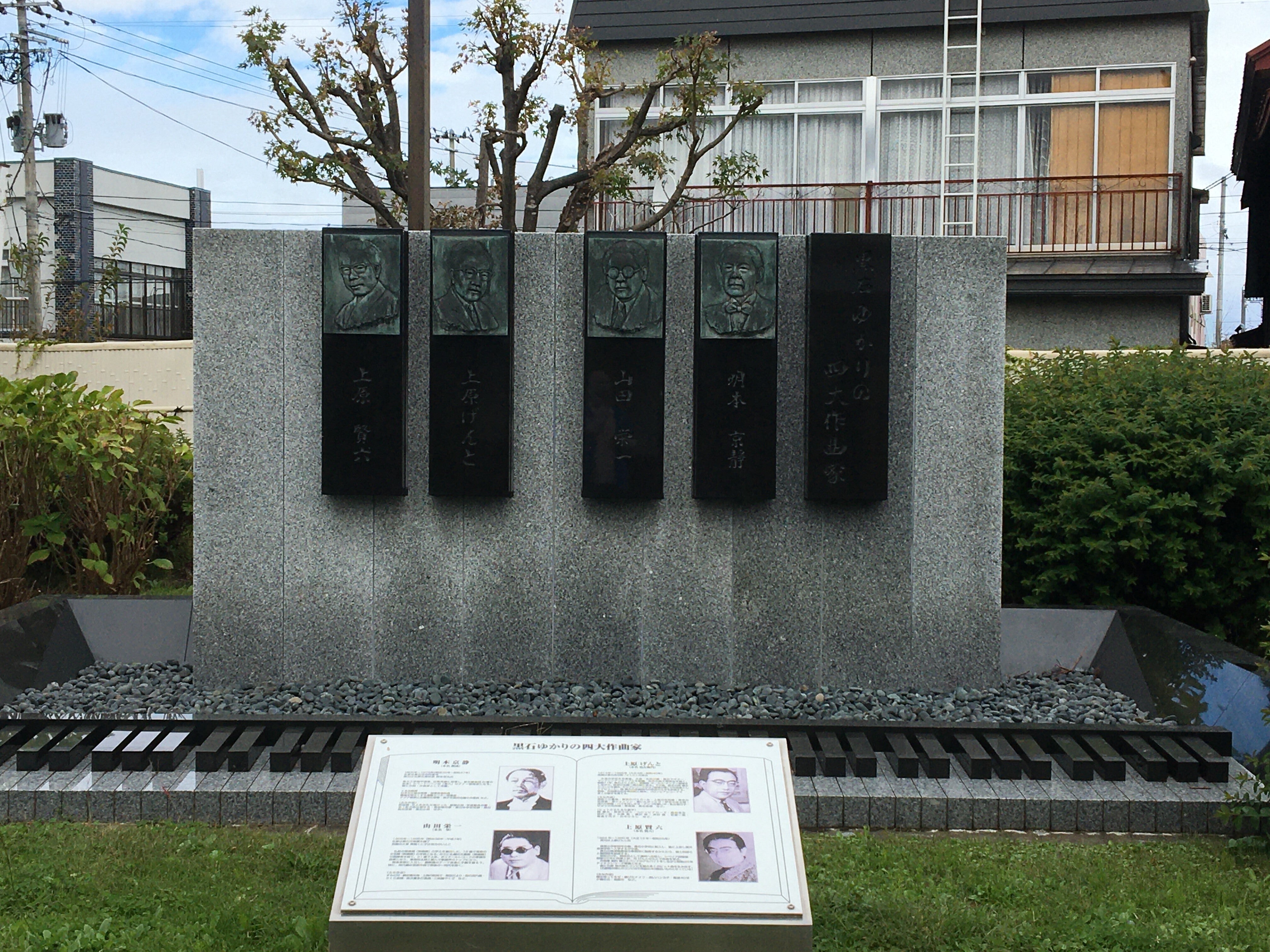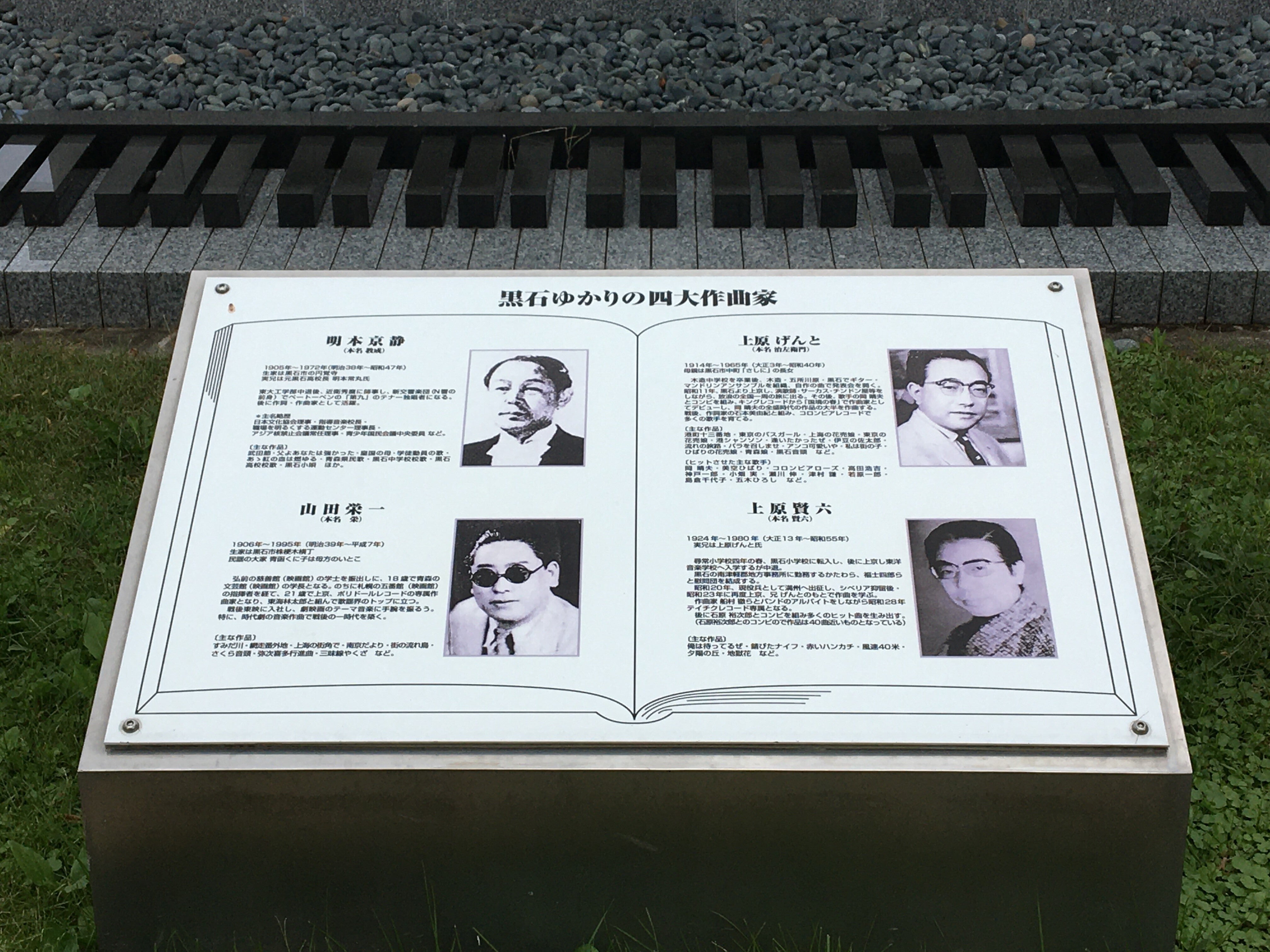 その横には黒石市の4代作曲家の石碑があります、これから秋の観光シーズン、横のテラスでゆっくりしてみては!