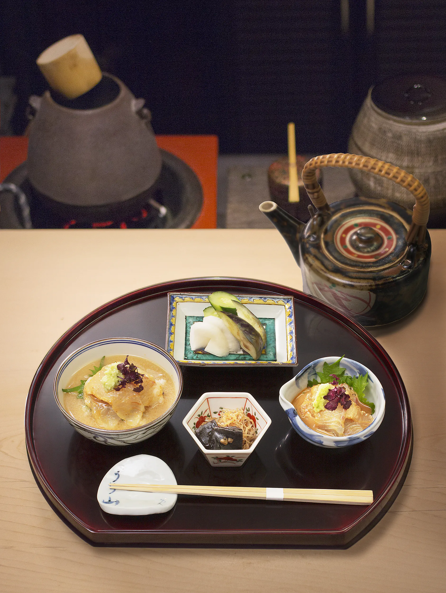店主内山英仁氏は、茶懐石専門店、割烹料理店等様々な和食店にて研鑽を積み、表千家の講師として茶道にも精通。