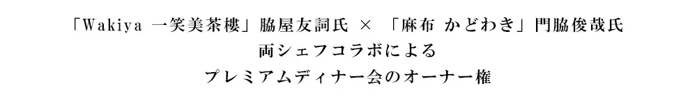「Wakiya 一笑美茶樓」の脇屋友詞氏と「麻布かどわき」の門脇俊哉氏による、未だかつてない一夜限りの奇跡のコラボイベントがついに実現。