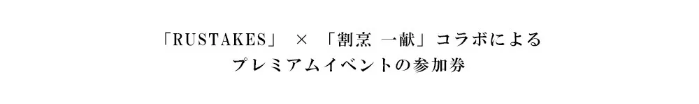 広尾のモダンチョップハウス「RUSTEAKS」と会員制の「割烹 一献」の限定コラボイベントの参加券です。