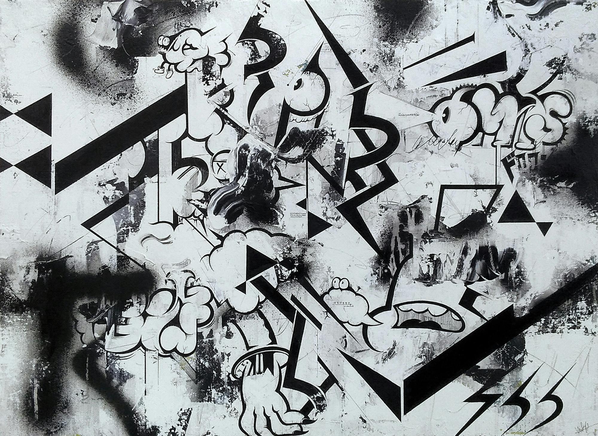 ほとんどは白と黒という限定された要素を主に使用しながらも、変化に富んだ豊かな絵画空間を展開する。