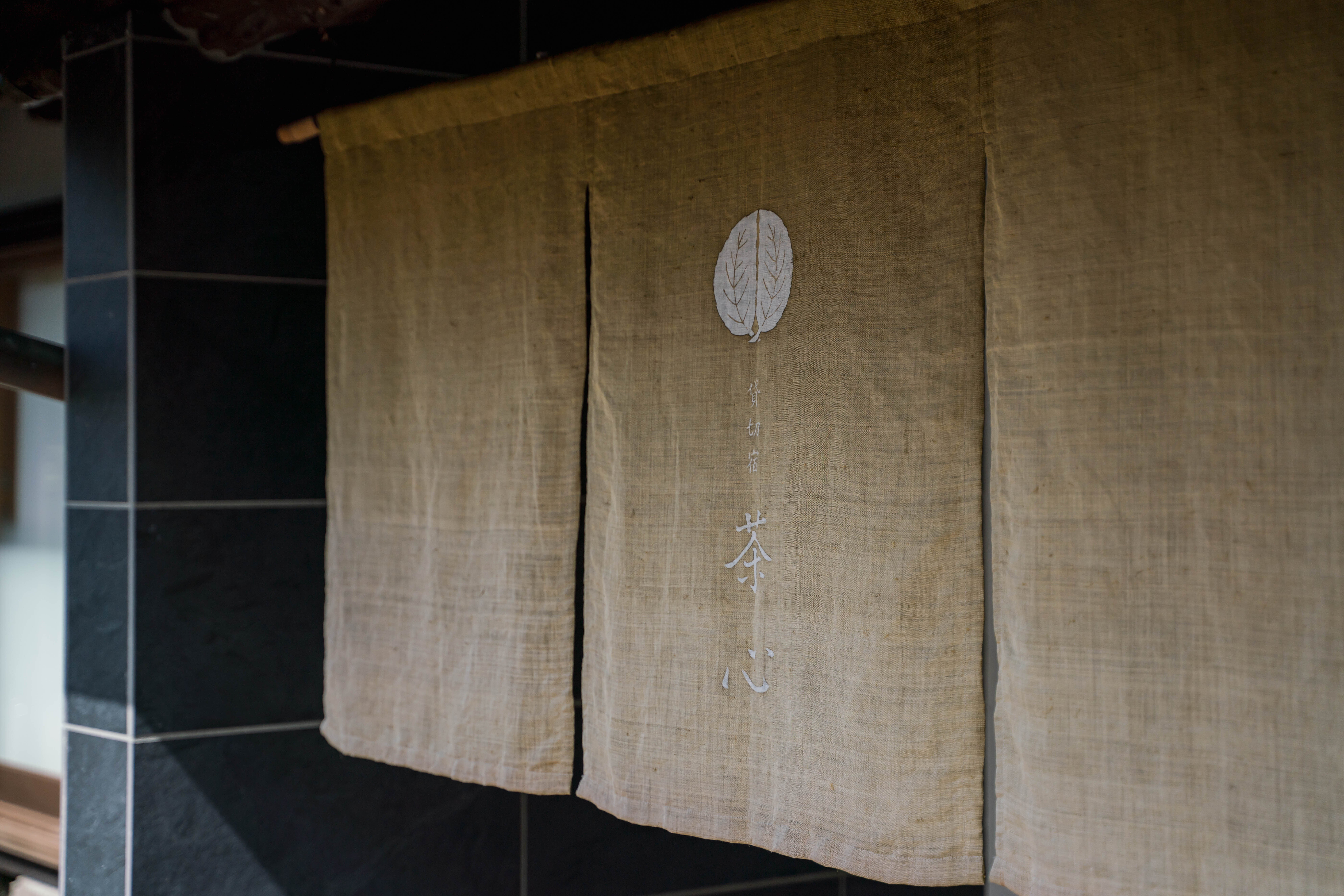 「利休色」に染めた暖簾。一日も早くまたこの暖簾をいろんな方々にくぐっていただきたい!