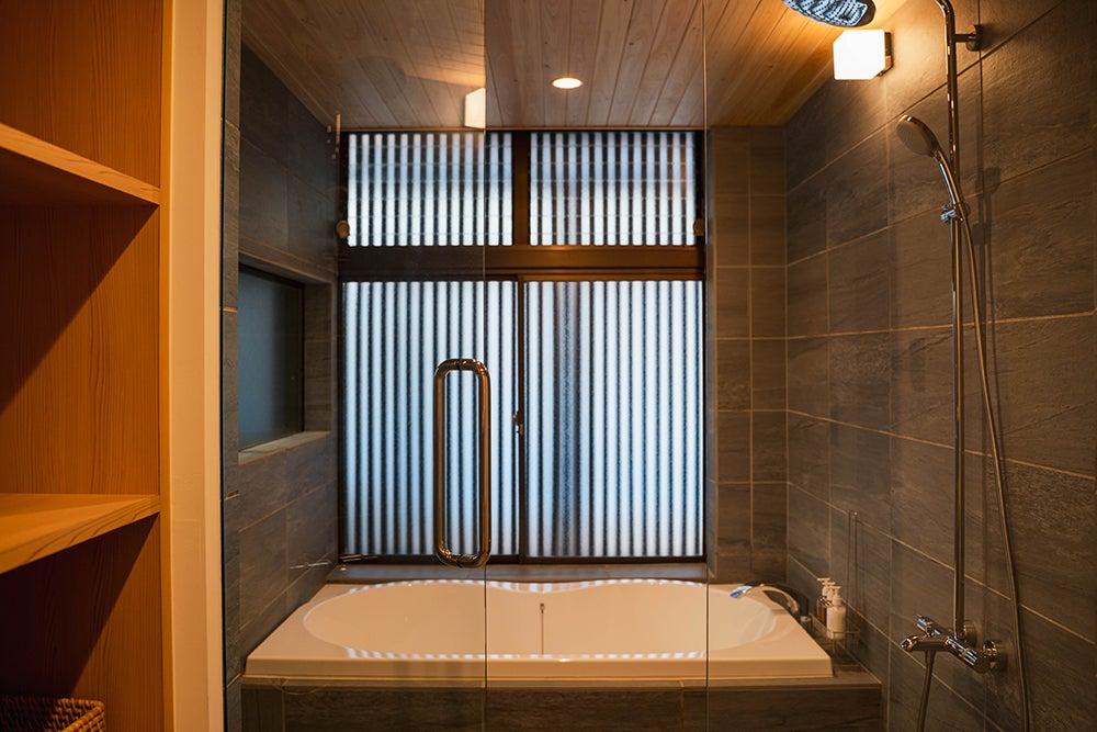 バスルームは実はこんなふうにガラス張りに。モダンなつくりになっています。