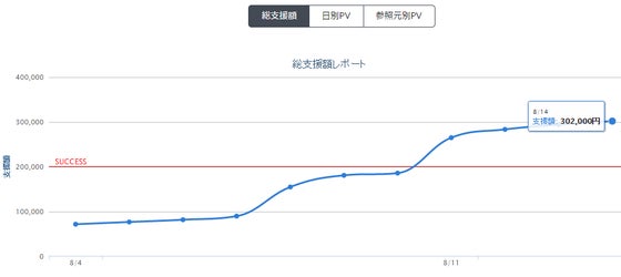アクセス148PV、達成率151%(+10)、総額302,000円(+18,500)、シェア757件(+33)