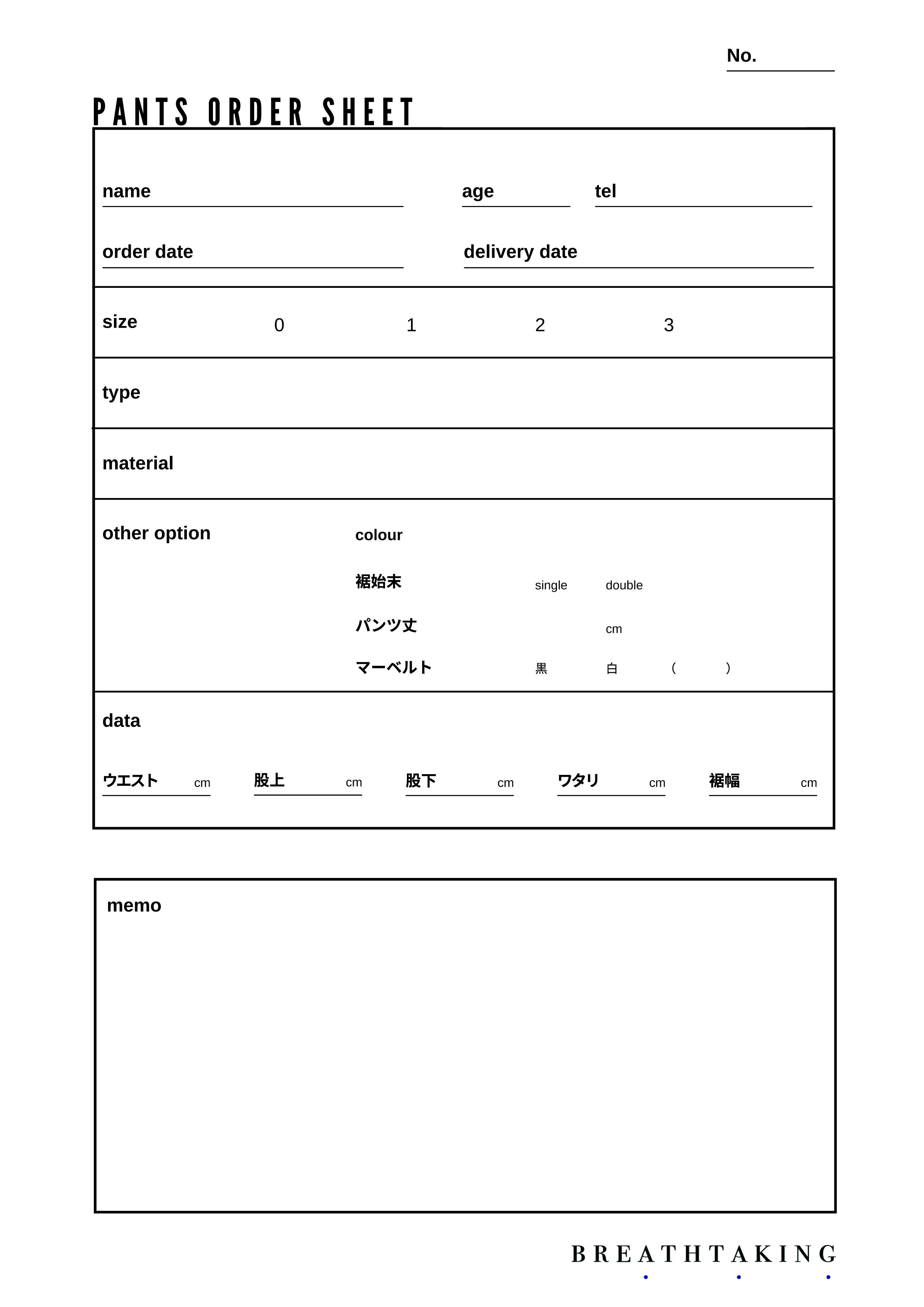 スラックスの寸法イメージに関しては、BREATHTAKING ONLINE SHOP をご覧頂けますと幸いです。