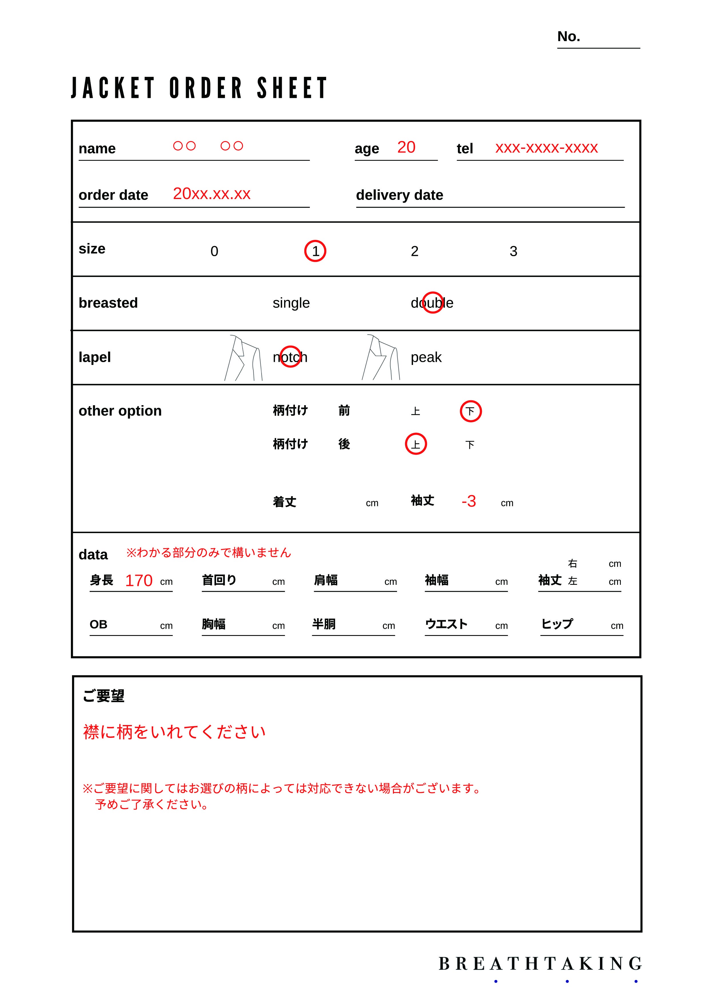 ジャケットに関しては、下記はあくまで規定サイズとなりますがご参照ください。