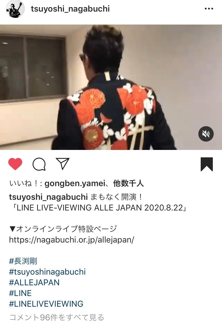 なんと、長渕剛さんが ELIXIR KIMONO JACKET を昨日の「LINE LIVE-VIEWING ALLE JAPAN 2020.8.22」 の一曲目の衣装として着用してくださいました!