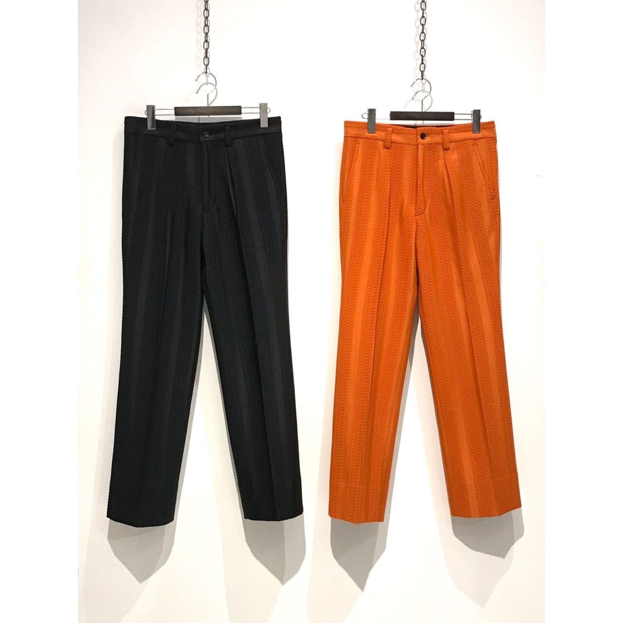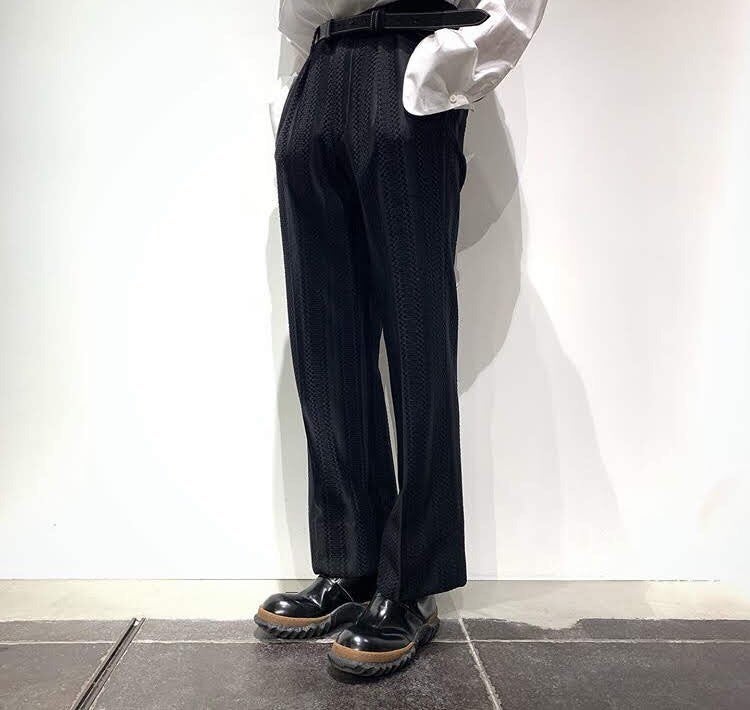 それをボンディングという手法を用いて透け感を無くすことで、男性でも着れるレースアイテムにシフトさせたのが、この " BONDING LACE SLACKS " 。