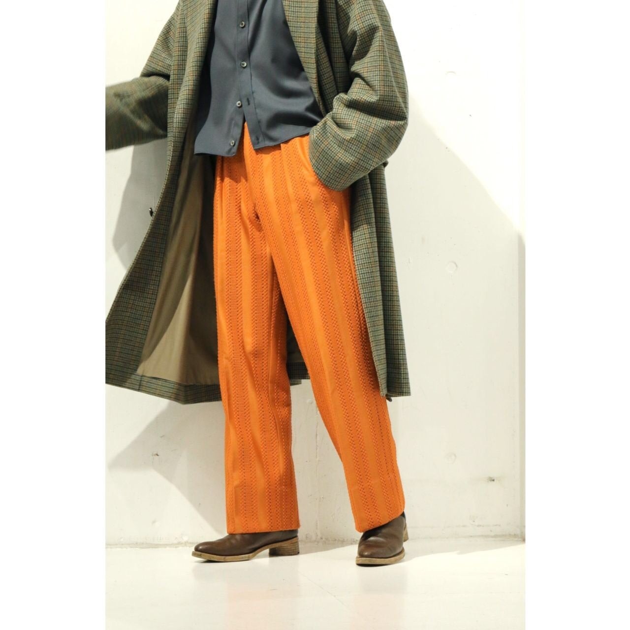 普通なら、男性にはあまり馴染のないレースという素材。このスラックスで使われているレースも、通常はレディースのワンピースやスカートなんかに用いられている素材なんです。