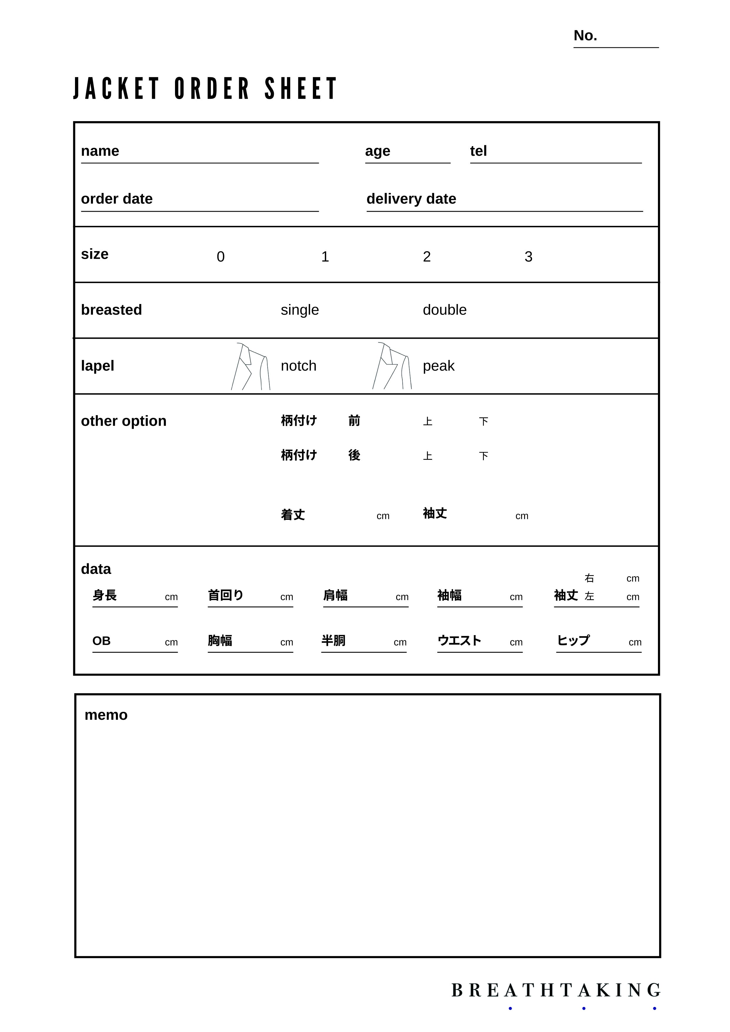このオーダーシートの数だけ、 ELIXIR KIMONO JACKET が生まれていきます。