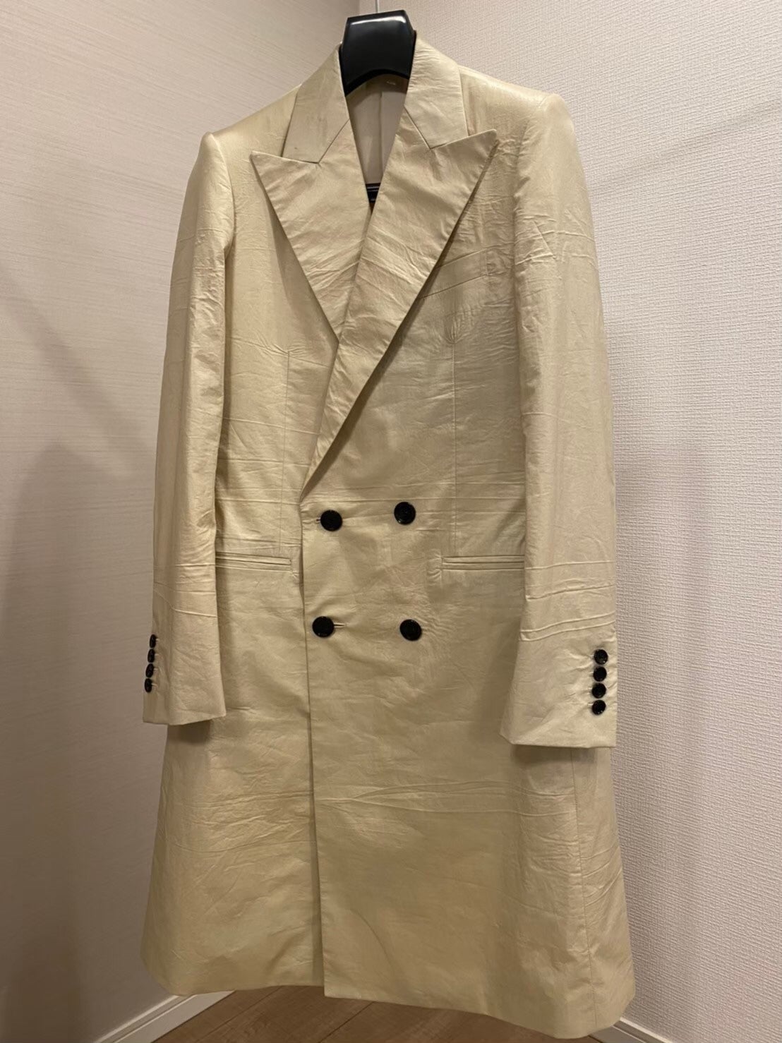 こちらは、ジャケットには絶対使わないようなシャツ地をこれまたボンディングすることで、他にはない生地感に。わざと残した皺を含め、まさに2つとない一着です。