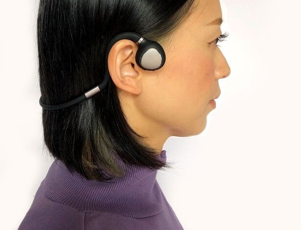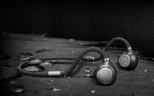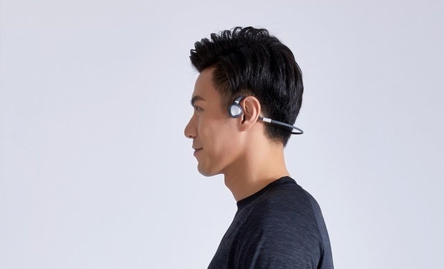 骨伝導ヘッドホンは、骨を通して伝わる骨導音を利用しているため耳の穴をまったく塞がずに音を聞くことができます。