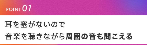 当然「イヤホン難聴」の心配はなく、耳を塞がないので周囲の音は鼓膜から聴き取ることができます。