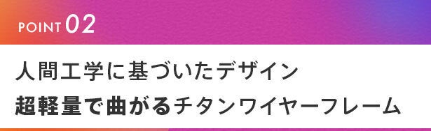 しかもわずか31gの軽量化と耐久性を図るため、フレームには弾力性のあるチタンワイヤーを採用。