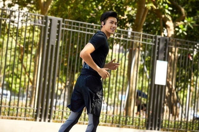 【PS-B3】はジョギングやフィットネスなど激しい運動をしながら音楽を楽しんでもヘッドホンが耳からズレにくく作られています。