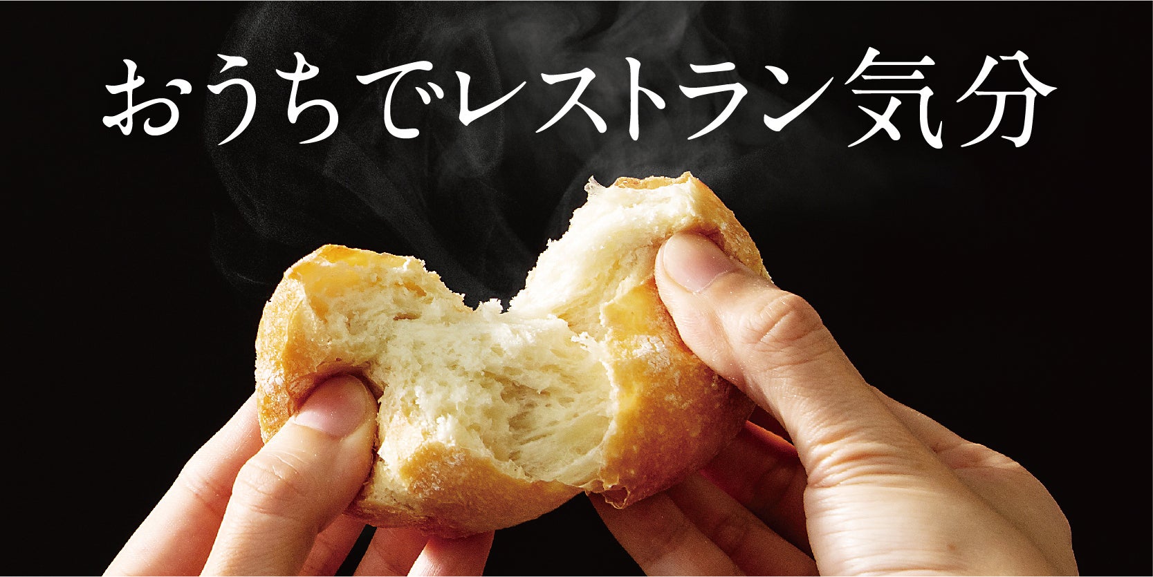 焼きたての最高の状態を見極め、一気に冷凍して旨味と水分を閉じ込めているので、焼き直すだけで、湯気が出るほどの焼きたてパンが完成します。常温のパンをただ温めなおすだけでは、この味は出せません。