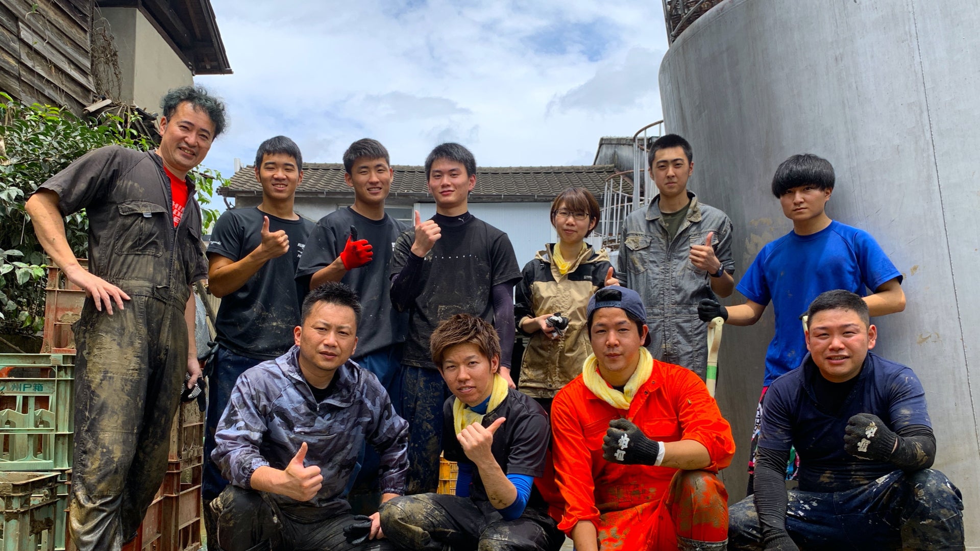 ※こちらの写真はSNSの呼びかけで集まっていただいたボランティアの方々です(2020.7.12渕田酒造場)