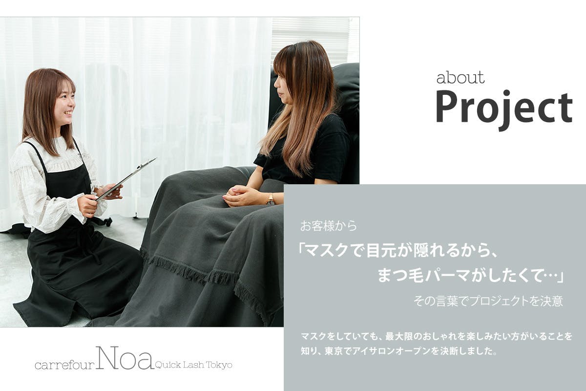 先行きがわからない状況の中で、プロジェクトを進めていますが、顔の半分を隠しても美しく・自分らしくありたいお客様のために、埼玉を飛び出し、東京の地でより多くの方にまつげパーマ・アイメニューをご提供できればとても嬉しく思います。
