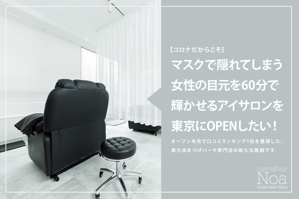 「女性の目元を輝かせるまつげパーマ専門店を東京にオープンしたい」 というクラウドファンディング。本当にタイミングが重なって始まったプロジェクトです。