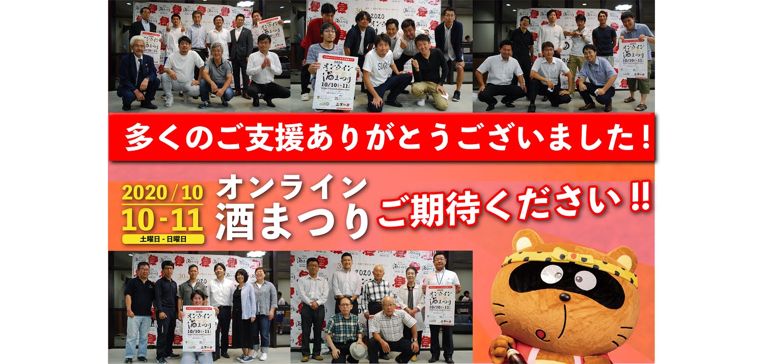 来月の10日、11日に開催する「2020オンライン酒まつり」は、この感謝の気持ちとともに、皆様に元気をお届けし、更に魅力ある酒まつりに進化します!