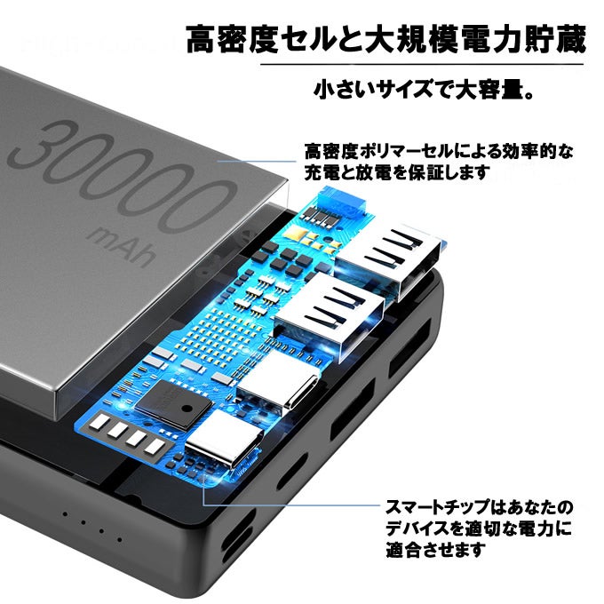 ・大容量30,000mAhでパソコンや各種デバイスもしっかり充電できる