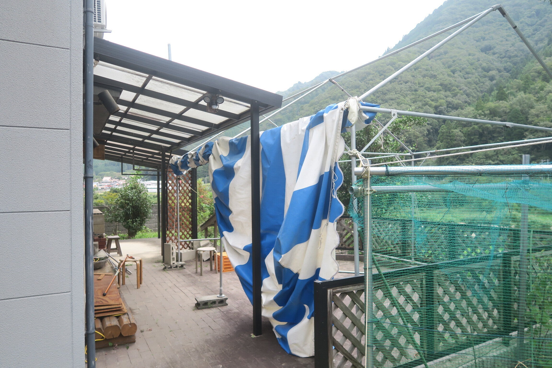 | 風炎窯では「健康と創造」をテーマに、「超耐熱陶器」の制作と「陶芸&調理体験」の運営をしています。ここ最近は、自然を感じながらの創造というコンセプトが明確になってきました。 体験スペースが狭いこともあり「1グループ貸切」で実施していますが、問合せが重なることがあり、予約をお断りせざるおえない状況があります。 今年の夏休み期間中、野外のテラスに運動会テントを張り、こどもを含む家族グループでの陶芸体験を実施したところ、太田川のセセラギや周りの山々に囲まれた環境が大好評でした。 そこで考えたのが、野外と屋内を同時に使いながら、2グループの体験を効率的に実施できる施設を作ることです。太田川の活用と効率的な体験運営のために、テラスの屋根の新設が必要になりました。 |