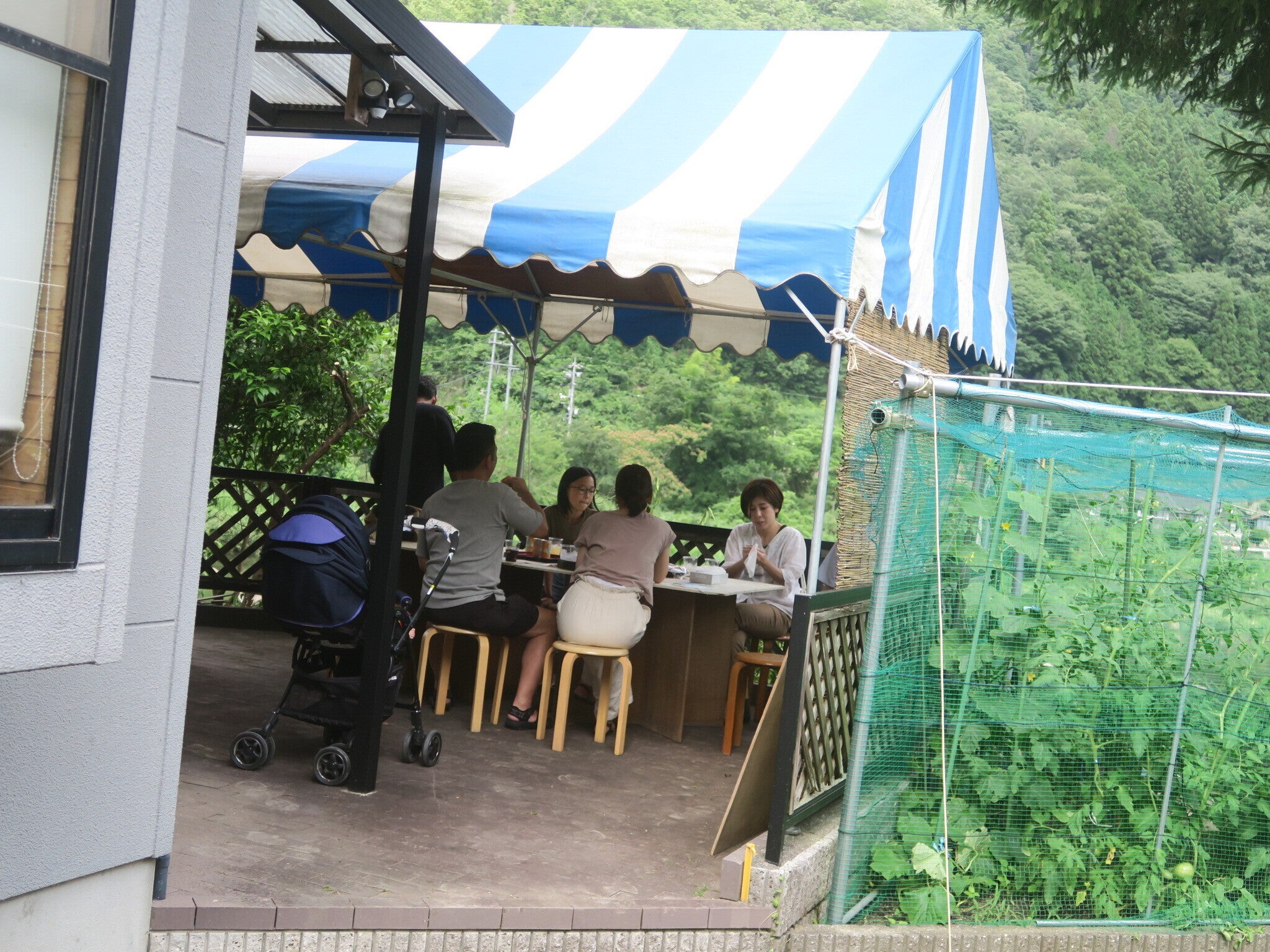 | 風炎窯では「健康と創造」をテーマに、「超耐熱陶器」の制作と「陶芸&調理体験」の運営をしています。ここ最近は、自然を感じながらの創造というコンセプトが明確になってきました。 体験スペースが狭いこともあり「1グループ貸切」で実施していますが、問合せが重なることがあり、予約をお断りせざるおえない状況があります。 今年の夏休み期間中、野外のテラスに運動会テントを張り、こどもを含む家族グループでの陶芸体験を実施したところ、太田川のセセラギや周りの山々に囲まれた環境が大好評でした。 そこで考えたのが、野外と屋内を同時に使いながら、2グループの体験を効率的に実施できる施設を作ることです。太田川の活用と効率的な体験運営のために、テラスの屋根の新設が必要になりました。 |