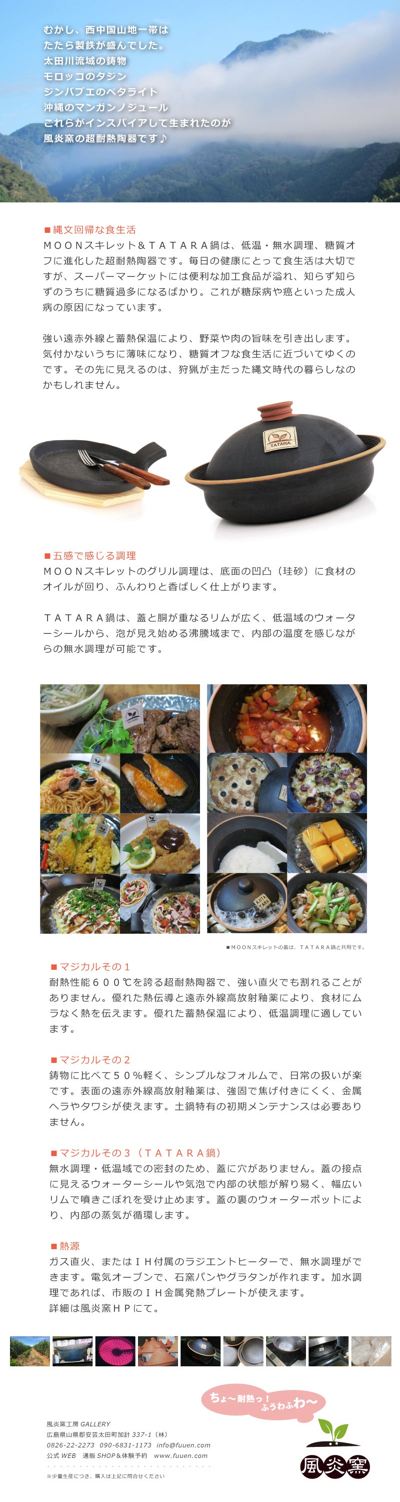 MOONスキレット・TATARA鍋(リターン品) 風炎窯 超耐熱陶器 公式ホームページ![]() ![]() 風炎窯 超耐熱陶器 公式ホームページ(低温調理レシピ&取扱はHPにて) ![]() パリパリチキン
