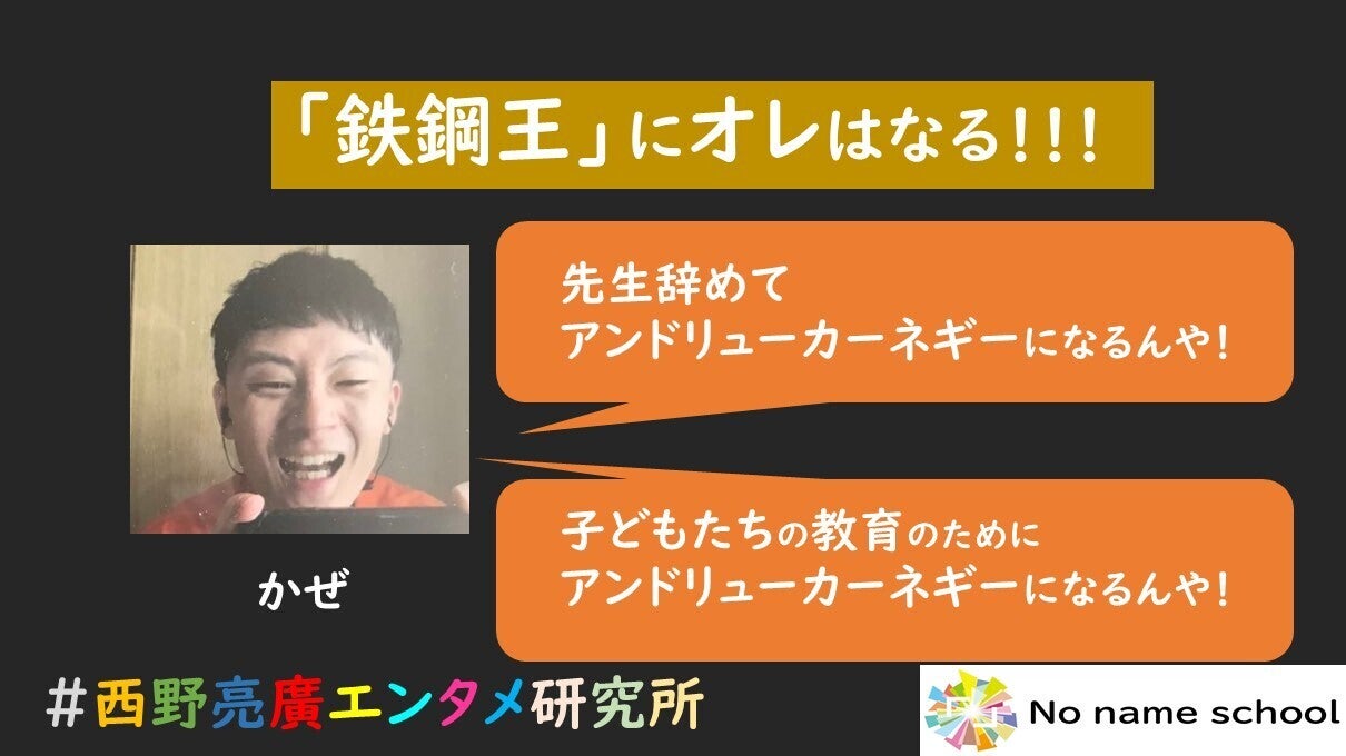 先生を辞めて、子どもたちや未来の教育のために「アンドリューカーネギー」を目指します。アンドリューカーネギーこそ、今教育に必要な人材像です。