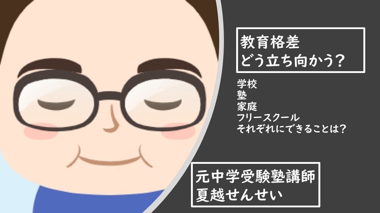 夏越せんせい:元中学受験塾講師。現在は専門学校教員。家庭環境や地域格差に課題感をもち、できることを模索中。
