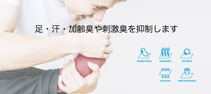DipSi は、足・汗・加齢臭の元であるイソ吉草酸を98%カットします。また刺激臭の元である酢酸を96%、アンモニアを80%、それぞれカットします。
