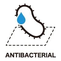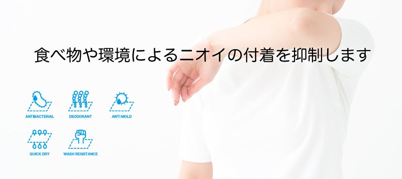 DipSi は菌の増殖率を未加工に比べ、およそ0.001% ~0.0001%に抑えます。繊維を清潔に保ち、イヤなニオイもブロックします。