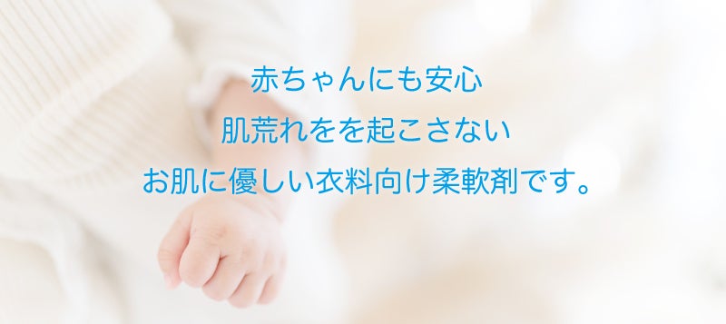 赤ちゃんにも安心。肌荒れを起こさない、お肌に優しい衣料品向け柔軟剤です。